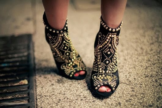As botas que recebem aplicações, podem ser spikes, tacinhas, fivelas, correntes, franjas, strass e outras, são bem modernas e fashion's. Perfeitas para produções bem elaboradas e na maioria das vezes, até formais. Temos que tomar um pouco de cuidado se a bota for totalmente enfeitada.
